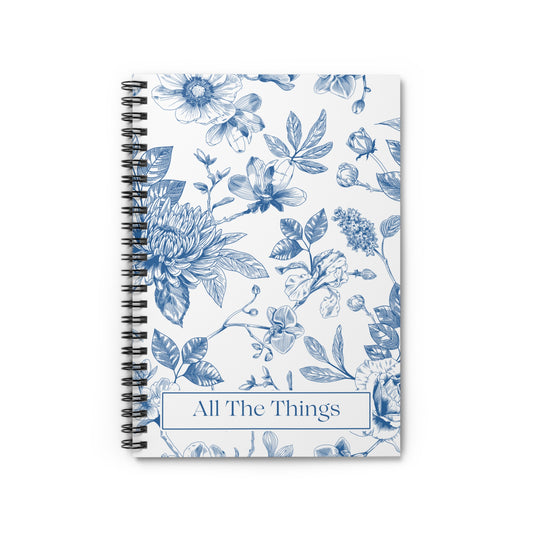 Blue and White Floral Spiral Notebook - "All The Things" - Perfect for Journaling and Planning, Gifts for Her, Chinoiserie